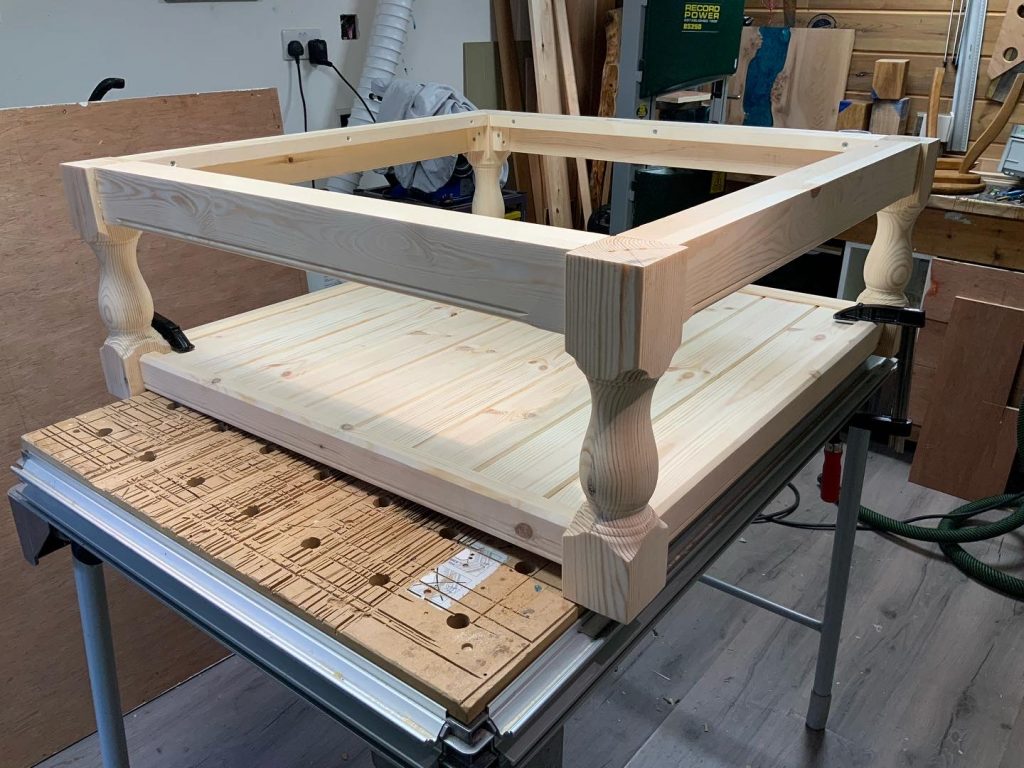 This customer had an existing table with an inscription from her father underneath. She asked me to design a contemporary table using as much of the material from the old table as possible.